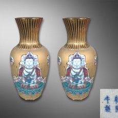 粉彩观音镀金瓶