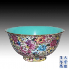 粉彩百花不落地贡碗
