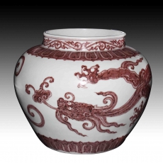 釉里红龍纹罐