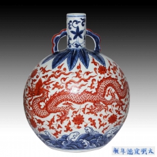 青花釉里红海水龍纹抱月瓶