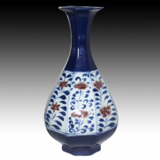 霁蓝青花釉里红八方玉壶春瓶