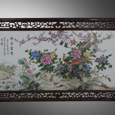 刘雨岑画《锦堂富贵》花鸟瓷板画