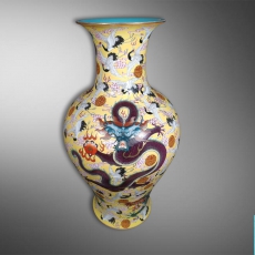 珐琅彩黄地五龙百鹤纹赏瓶 (珍臻轩)藏