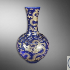 霁蓝描金龙纹祥云纹天球瓶 (珍臻轩)藏