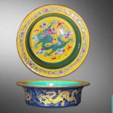 粉彩龙纹折沿盆