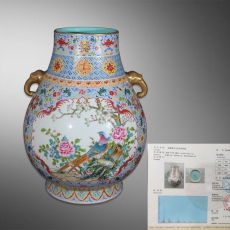 (乾隆款)珐琅彩开光花鸟双耳尊
