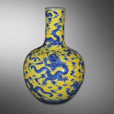 黄地青花龙纹天球瓶 001502