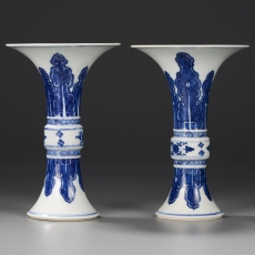 青花蕉叶纹小花觚一对