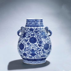 青花缠枝莲托八宝双螭耳尊
