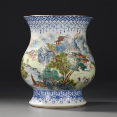 粉彩山水楼阁人物纹撇口尊