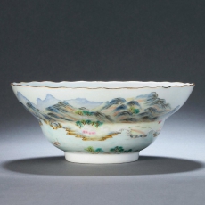 粉彩描金山水花口碗