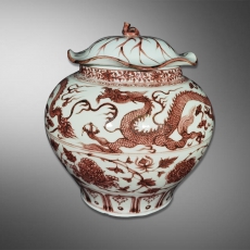 釉里红龙纹大罐
