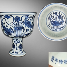 青花鱼藻纹高足碗