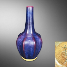 钧窑长颈瓜棱瓶