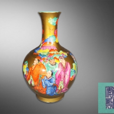 黄釉粉彩周文王访贤赏瓶