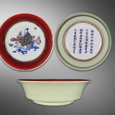青花釉里红太白醉酒撇口盘