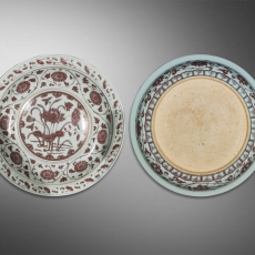 釉里红一捧清莲纹大盘