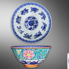 外粉彩内青花暗八仙碗