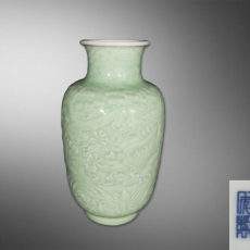豆青釉塑胎龙纹灯笼瓶