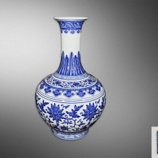 青花缠枝莲花卉纹八棱玉壶春瓶
