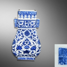 天青釉塑胎四方花插