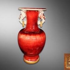 珊瑚釉本金葫芦瓶