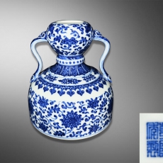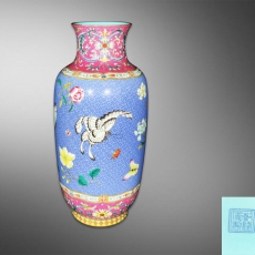 蓝地粉彩轧道葫蝶花卉观音瓶