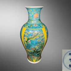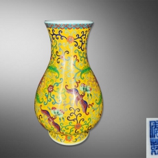 瓷胎畵珐琅缠枝花卉黄釉凤尾尊