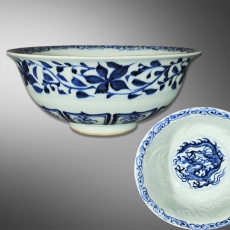 青花缠枝花卉内刻龙纹碗