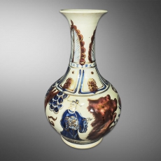 青花釉里红人物描金瓶