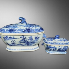 青花山水捧盒