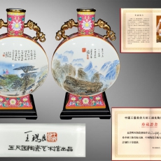 王锡良《江山多娇》粉彩双耳抱月尊