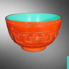 外珊瑚釉内松石绿葵龙碗