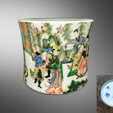 五彩刀马人物笔筒