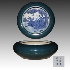 内青花外兰釉笔洗