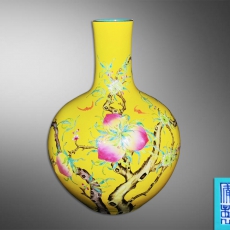 黄釉轧道九桃蝙蝠天球瓶
