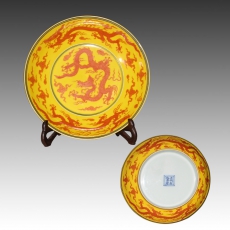黄地矾红龙纹赏盘