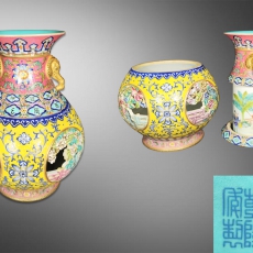 洋彩六开光方瓶