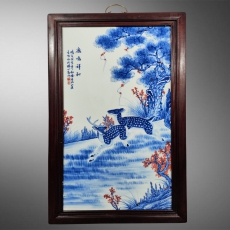 王步 双鹿瓷板画