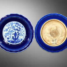 霁蓝釉松竹梅纹折腰盘