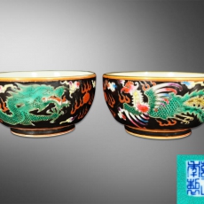 黑釉粉彩龙纹小碗