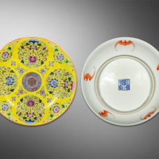 黄地暗八仙团花盘