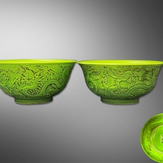 乾隆绿秞龙纹碗一对