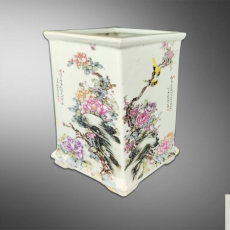 刘雨岑 花卉四方笔筒