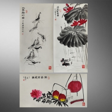 齐燕君 水墨群虾图 荷花鸳鸯图 满堂吉庆图