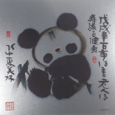 韩美林 熊猫银画