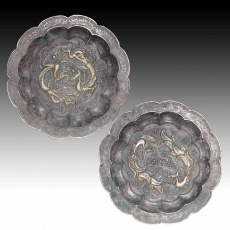 高浮雕鐕刻龍凤葵口盘一對