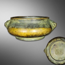 黄铜冲天耳香炉(金玉满堂.招财进宝)