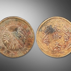 中华民国500.中华铜币双旗币二十文.中华铜币双旗币壹枚