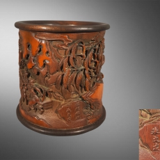 朱文友 钟馗嫁妹竹雕笔筒